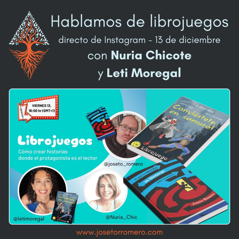 Lo que más me gusta de los directos, además de que son muy frescos y dinámicos, es que dan cabida a preguntas y respuestas. Desde que publiqué el manual de escritura de librojuegos Si quieres escribir un librojuego, pasa a la página 1 he tenido la oportunidad de participar en distintas charlas y responder a un montón de preguntas de personas interesadas en crear este tipo de obras interactivas. ¡Estaré encantado de resolver dudas y hablar de las tripas de los librojuegos!